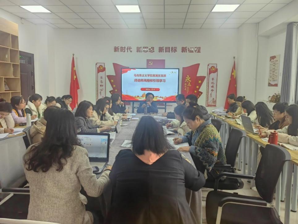 为进一步增强马克思主义学院教师道德情操,引导教师们成为有扎实学识、有仁爱之心的好老师,2024年12月4日上中午13:00,马克思主义学院全体教师在1-402会议室举行师德师风榜样引领学习会议,会议由马克思主义学院院长严建会主持,马克思主义学院全体教职工参加会议。