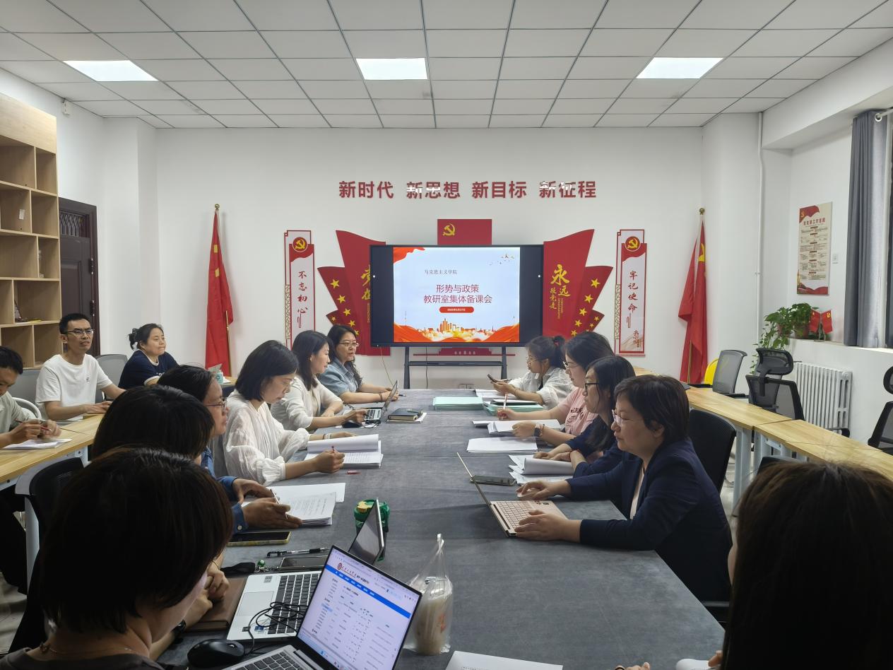 为深入贯彻落实立德树人根本任务,持续提升形势与政策课程教学质量,2025年5月27日上午9:00-11:00,形势与政策教研室在1-402会议室召开集体备课教研会。会议由教研室主任杨芳主持,全体承担形势与政策课程的教师参会,围绕学风建设、课堂管理及考核改革等核心议题展开深入研讨。