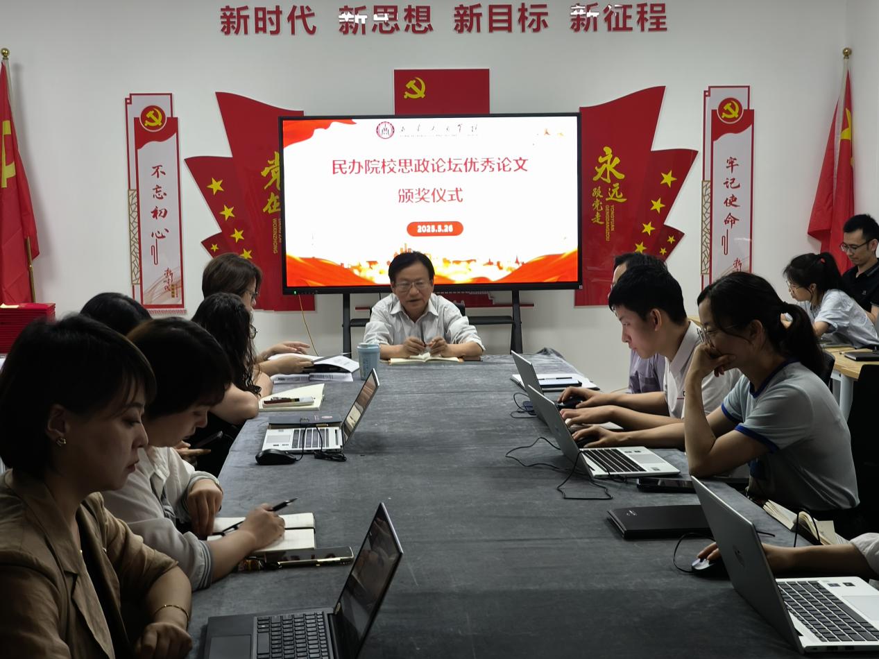 2025年5月26日中午1点,西安工商学院马克思主义学院于1-402会议室召开全体教师会议,集中表彰2024年思政课教师“大练兵”及“提升高校思政引领力|塑造立德树人新格局”学术研讨会获奖教师,并部署本周学院重点工作。会议由严建会院长主持,全院教师参会。
