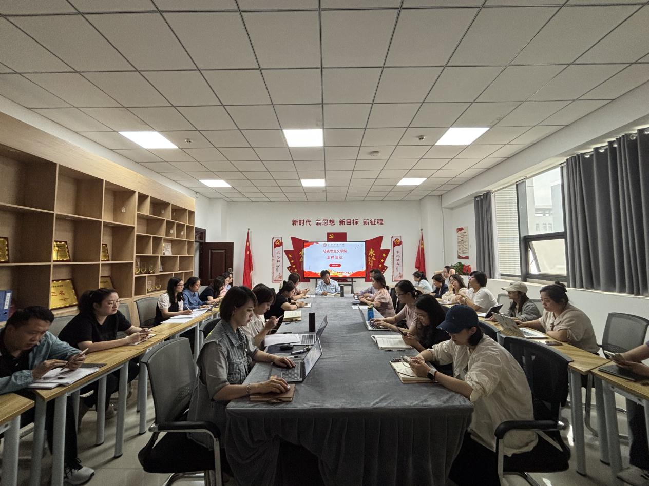 2025年6月3日,马克思主义学院在1-402召开全体会议,会议由马克思主义学院院长严建会主持,教学副院长王珊珊、各教研室主任及全体教师参加。