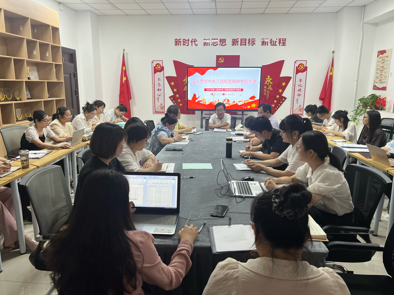 张婉宏、原潇菲、徐道良三位老师带领全院教师领学中央八项规定重要文件精神,集体观看《永远吹冲锋号》第三集《铁规矩硬杠杠》,以案例警示等形式强化对中央八项规定精神的理解,筑牢纪律意识。