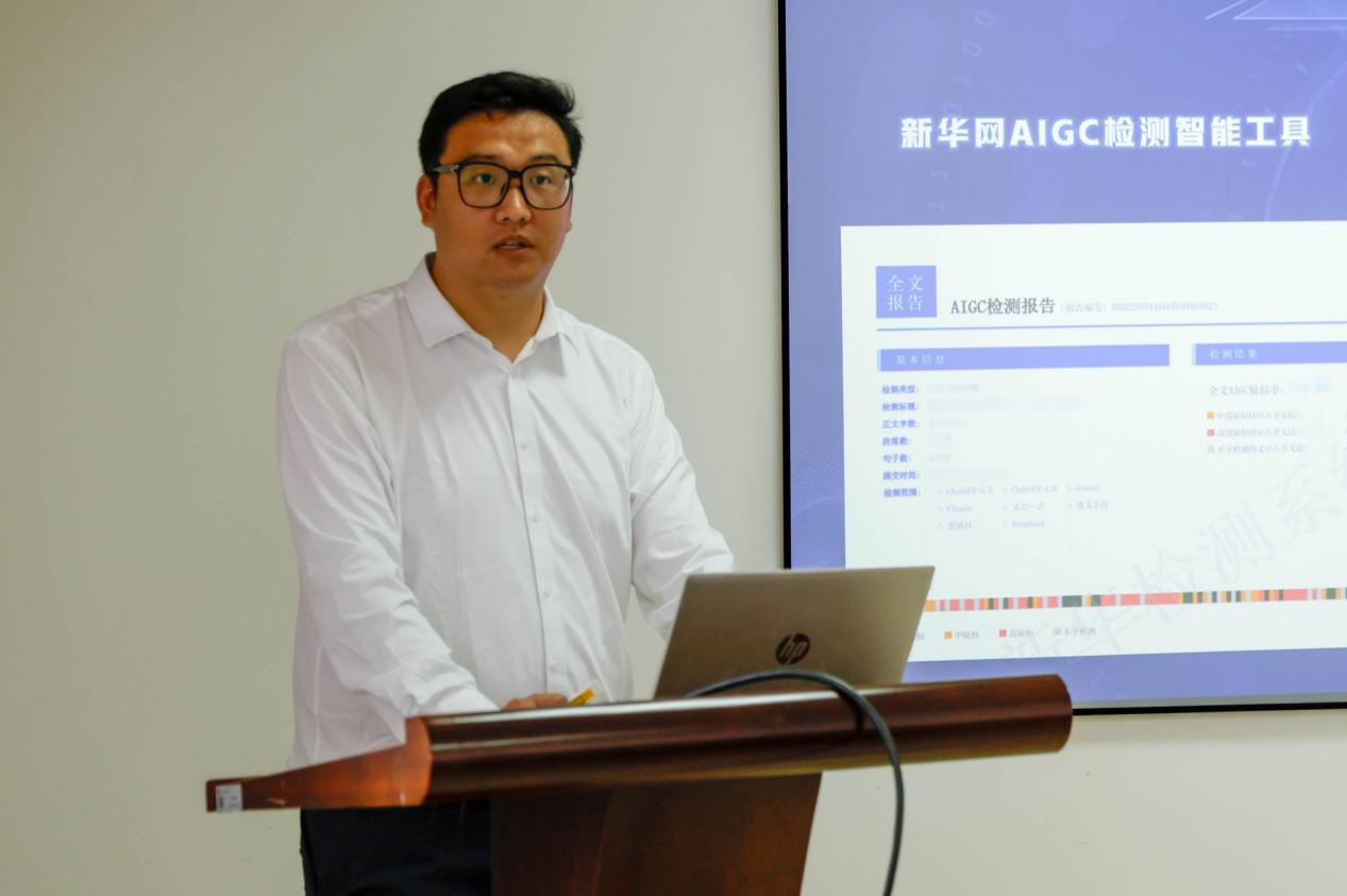 新华网学术中国出版服务中心王云锋主任为马克思主义学院全体教职工作题为《央媒引领 服务创新 新华网学术中国赋能人才教育科技高质量发展》的主题报告。王云峰主任主要围绕新华网建设学术中国政策背景、政企产研共建赋能创新发展、新华网宣传报道提升社会影响力三方面进行交流。王主任的报告站位高远、内容详实、信息量大,不仅深入解读了新华网学术中国平台的建设背景和核心价值,更通过生动的案例,展示了政企产研协同创新赋能教育科技发展的广阔前景,特别是对提升高校学术影响力、服务教师发展提供了极具价值的思路和路径,为思政课教师拓宽视野、提升科研能力、增强育人实效提供了新的平台和机遇。