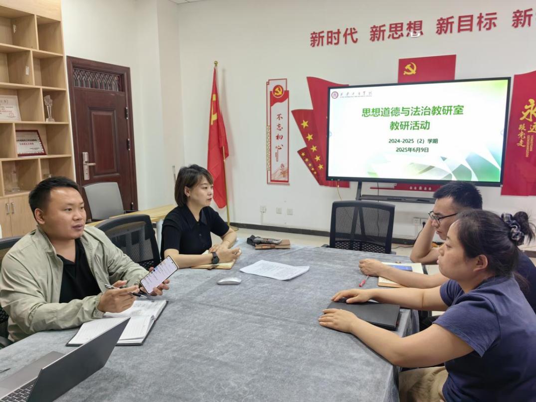 2025年6月9日16:00,思想道德与法治教研室在1-402会议室召开了教研室会议。会议由教研室主任马星老师主持,思想道德与法治教研室全部人员参会。