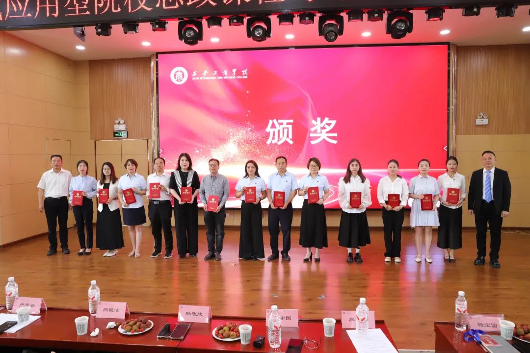 西安工商学院党委书记崔亦国、校长廖民生为征文获奖者颁奖