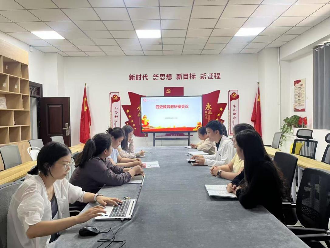 2025年6月11日13:30,“四史”教育课程在1-402会议室召开了集体备课会。会议由教研室主任王宇老师主持,“四史”教育课程全部任课教师以及教研室全部人员参会。