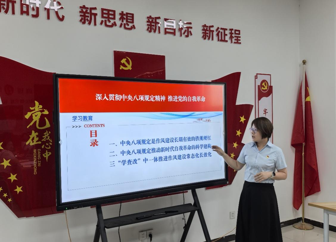 随后,党支部副书记王珊珊结合学院实际工作,强调全体党员教师要深刻领会中央八项规定精神实质,将其融入日常教学、科研和管理工作中。并从中央八项规定是作风建设长期有效的铁规硬杠;中央八项规定推动新时代自我革命的科学建构;“学查改”中一体推进作风建设常态化长效化三个方面开展学习教育。