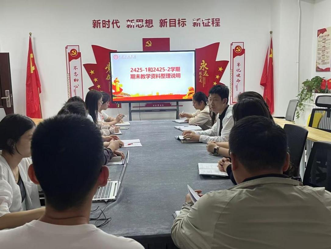 会议伊始,王宇老师强调要严格按照学校和学院的要求,完成2425-1学期和2425-2学期的“四史”教育课程归档材料,并告知授课教师2425-2学期的归档材料应该按照教务处最新下发关于2024-2025学年第二学期期末课程考核工作的通知及期末考核材料归档模板完成。