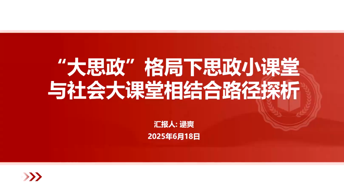 逯爽老师分享了思政小课堂与社会大课堂相结合的路径探析,强调以技术为支撑,以学生为中心,以实践为导向,构建资源活化理论,深化价值内化的全链条育人模式。